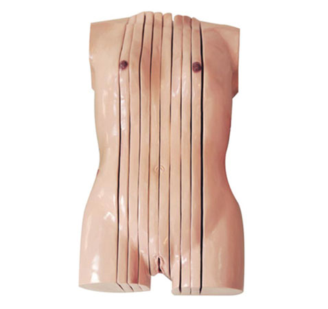 該款男性軀干矢狀斷層解剖模型整體尺寸為42x20x84.5CM,一套共有10片,為方便使用者學(xué)習(xí)使用,每片可以單獨取下,并設(shè)置有數(shù)字編號標(biāo)識每片的前后次序。