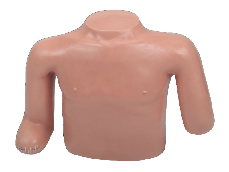 ■ 模擬頸部、胸部和上肢截肢的病人,右手臂從腕上截斷,左手從肘上截斷。